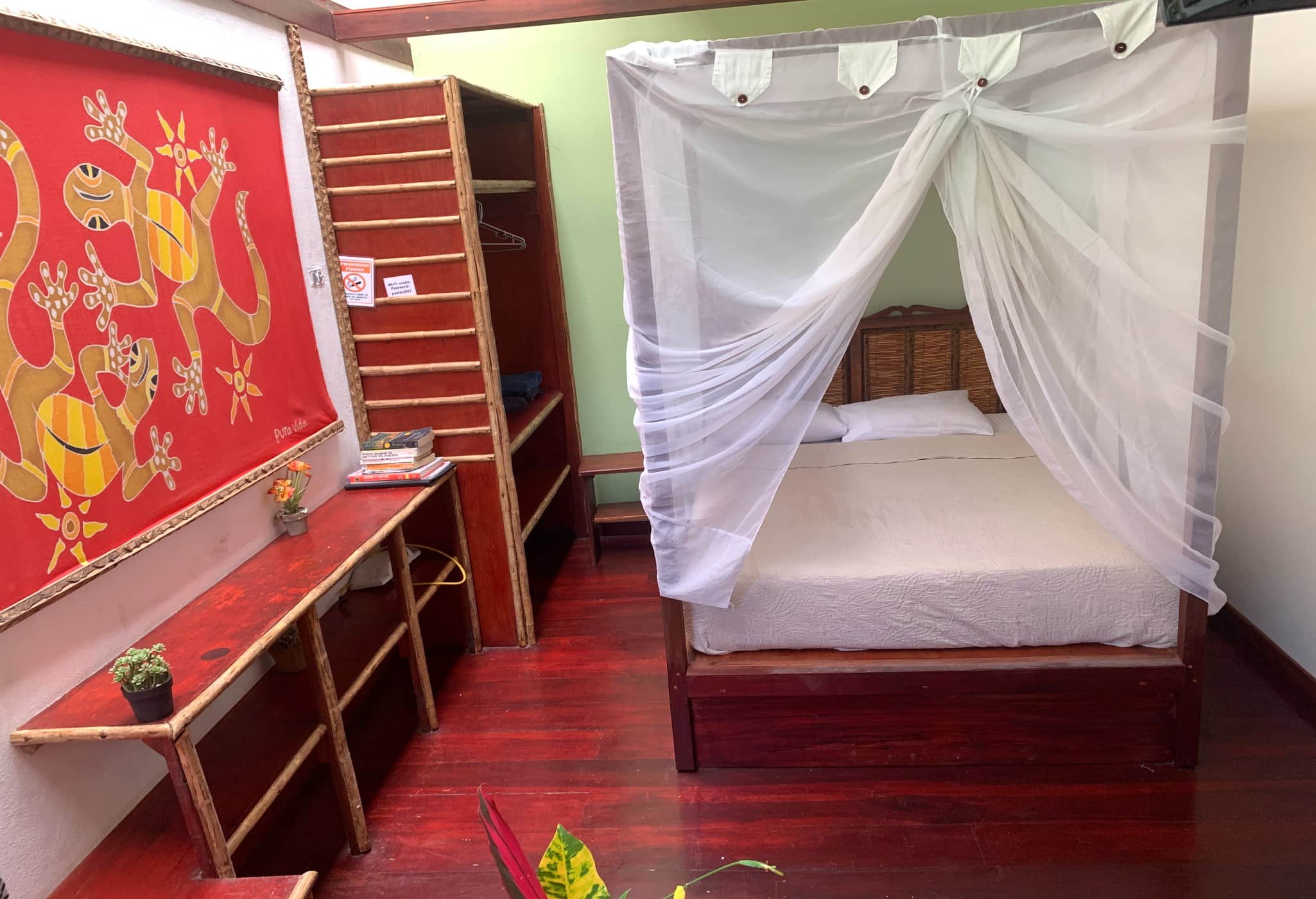 ONE FULL SIZE BED: Four-post bed with mosquito netting. Also has bed reading lights for additional comfort.