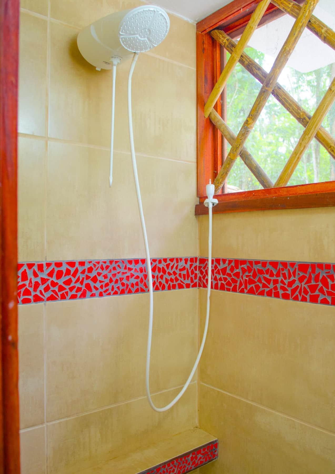 The openings of the villa are fitted with bug-proof screening. This allows for fresh air flow, none of our villas have glass windows. The air travels naturally with this bug-proof netting in place, which allows for cool air to come in. The high ceilings in our villas benefit this process.