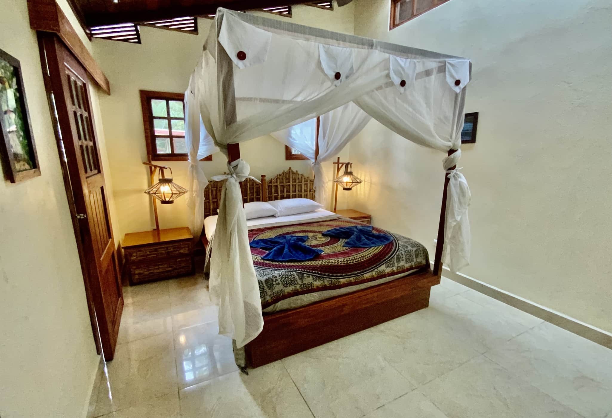 TWO SEPARATE BEDROOMS WITH QUEEN SIZE BEDS: Four-post mosquito netting with built in bed reading lights.